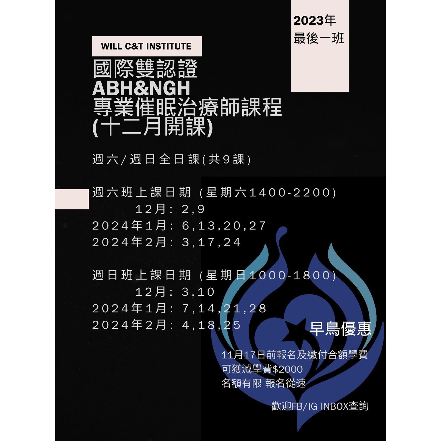 國際雙認證催眠治療師課程 (2024年3月開課) 早鳥優惠價