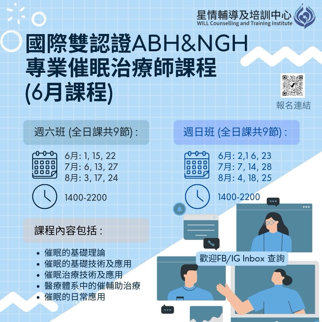 [6月]國際雙認證ABH及NGH專業催眠治療師課程