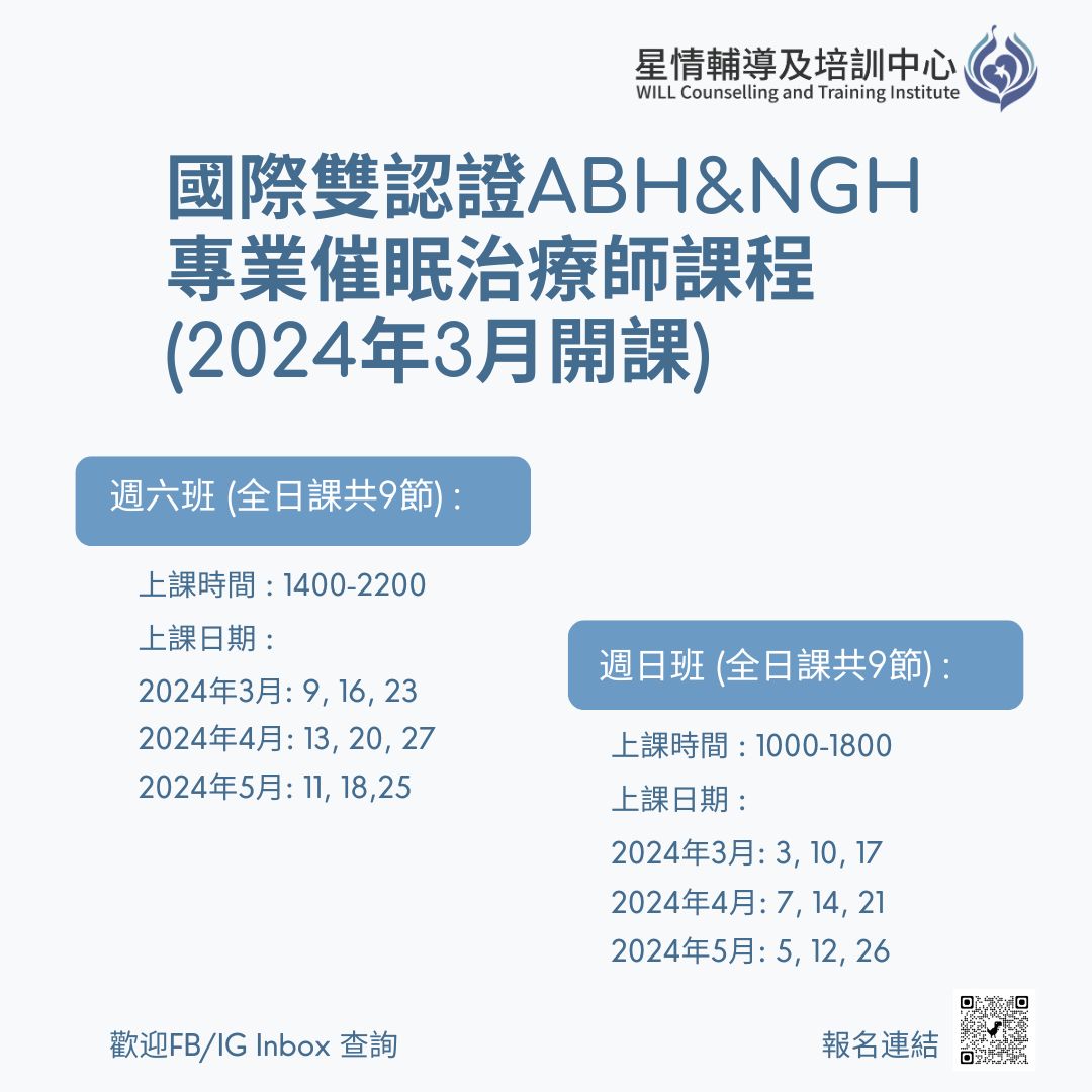 [2025年1月]ABH及NGH國際雙認證催眠治療師課程