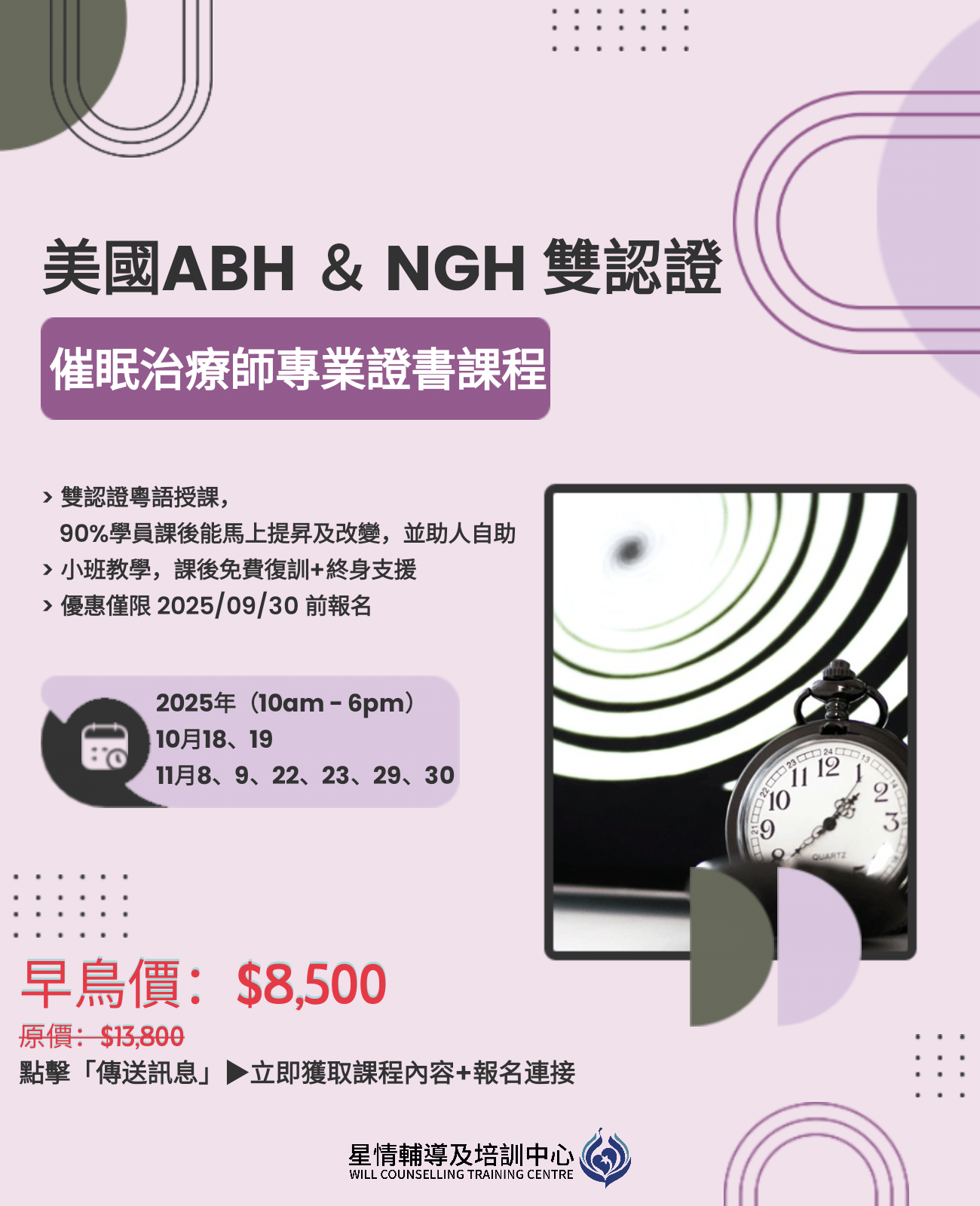 [早鳥留位-2025年10月]ABH及NGH國際雙認證催眠治療師課程